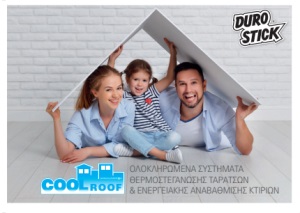 37 Η DUROSTICK, απόλυτα συµµορφωµένη στις επιταγές της σύγχρονης δόµησης, παράγει προϊόντα - λύσεις πιστοποιηµένης ποιότητας και συνθέτει συστήµατα ικανά να καλύψουν κάθε εφαρµογή ‘υψηλών απαιτήσεων’. Το γεγονός είναι, ότι µε το Ολοκληρωµένο Σύστηµα Θερµοστεγάνωσης COOL ROOF της DUROSTICK, οι ταράτσες µεταµορφώνονται σε χώρους αναψυχής, απαλλαγµένους από προβλήµατα κακοτεχνιών, επισκευών, λιµναζόντων νερών, υγρασίας και διάβρωσης των δοµικών στοιχείων. Η κτιριακή δοµή θωρακίζεται από τη ζέστη του καλοκαιριού και το κρύο του χειµώνα, ενώ εκµηδενίζεται η πιθανότητα εµφάνισης υγρασίας στην επιφάνεια. Το αποτέλεσµα στο σύνολό του, είναι άρτιο αισθητικά, επαναπροσδιορίζει τη χρήση της ταράτσας από τους κατοίκους του κτιρίου και χαρίζει υγιεινό εσωτερικό µικρο- κλίµα στους υποκείµενους της εφαρµογής, εσωτερικούς χώρους. Από την ίδια ηµέρα της ολοκλήρωσης των εργασιών, εξοικονοµείτε ενέργεια. Προστασία, Ασφάλεια, Άνεση, Ανακαίνιση & Εξοικονόµηση Ενέργειας ∆είτε ρεαλιστικά κινηµατογραφηµένη την εφαρµογή του ολοκληρωµένου συστήµατος θερµοστεγάνωσης ταρατσών COOL ROOF, στο web site της DUROSTICK και στο κανάλι της εταιρείας στο YouΤube